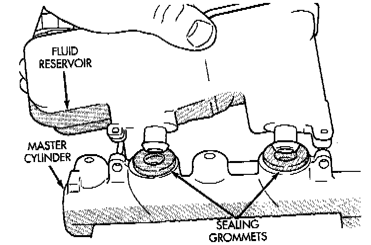 7. Remove the master cylinder housing-to-reservoir grommets.