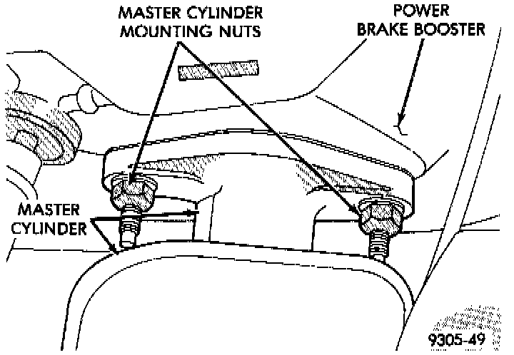 NOTE: Before installing master cylinder, reposition under hood wiring harness above master cylinder mounting studs, in front of booster.