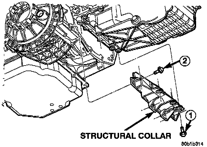 2. Remove bolts attaching structural collar to oil pan and transmission housing.