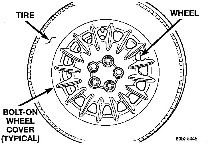 1. The wheel cover is bolted to the wheel using three of the five wheel nuts.