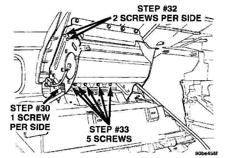 30. Remove the right and left pencil strut to Passenger Mrbag screws (45 in. lbs. torque).