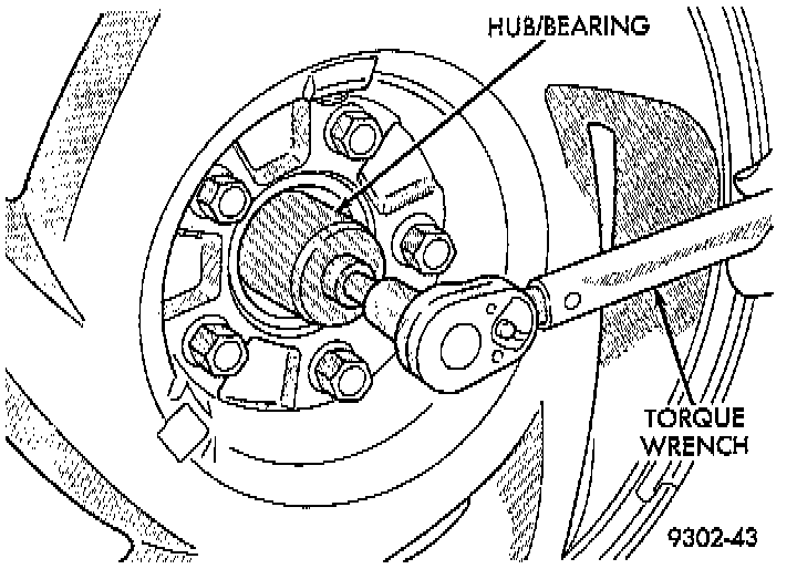 6. Install a NEW hub and bearing assembly to stub shaft retaining nut. Tighten, but do not torque the hub nut at this time.