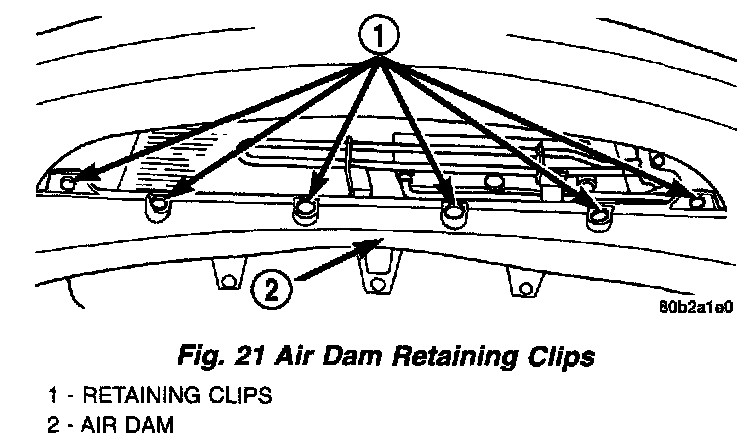5. Remove the 6 clips mounting the air dam to the radiator lower support.