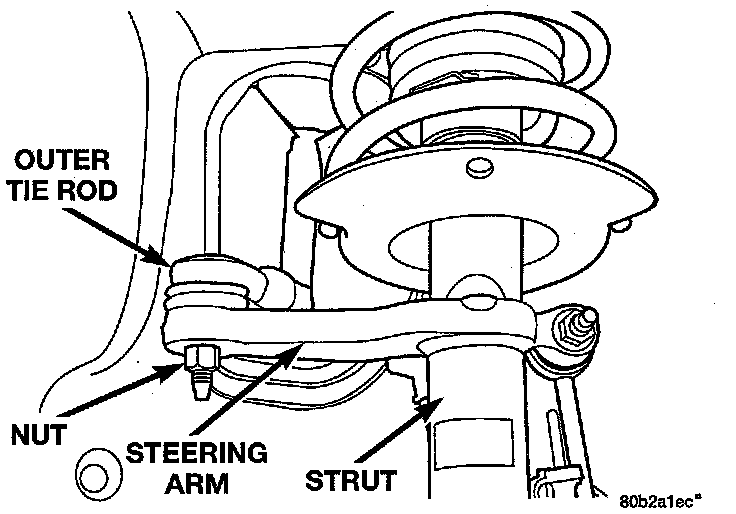 4. Remove the outer tie rod to strut steering arm attaching nut.