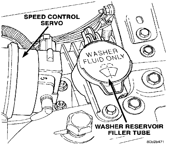 4. Reach up behind the washer reservoir and pull the filler tube off the rear of the reservoir.