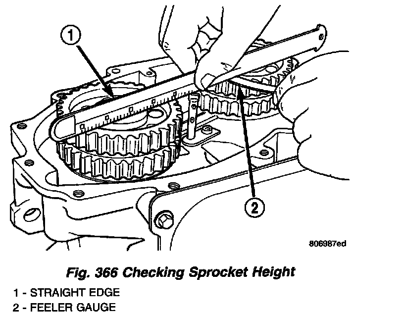 The chain sprockets are not reversible. Check the height difference using a straight edge (special tool 6311 or equivalent) and a set of feeler gauges.