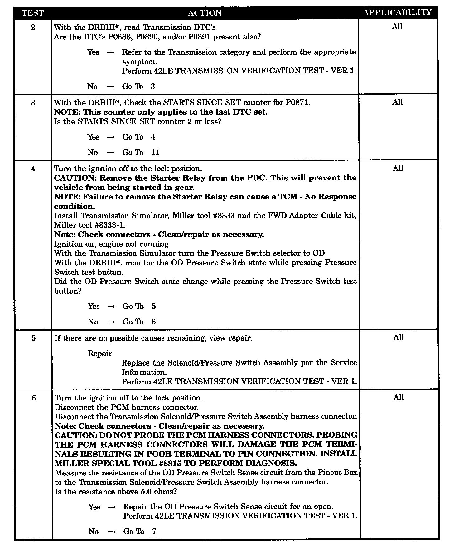 P0871 - OD PRESSURE SWITCH SENSE CIRCUIT