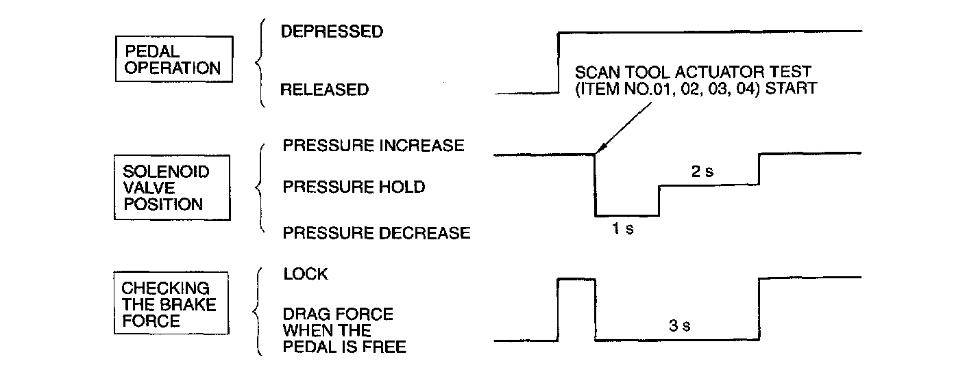 ^ When the ABS has been interrupted by the fail-safe function, scan tool MB99 1502 actuator testing cannot be used.