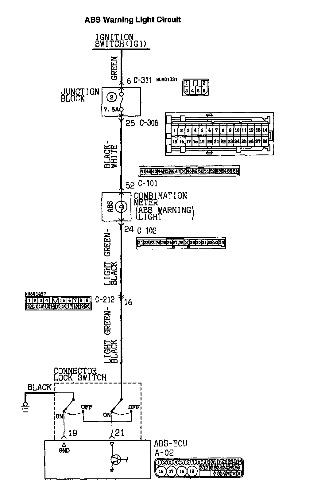 STEP: 1. Check the ABS warning light circuit at ABS-ECU connector A-02.