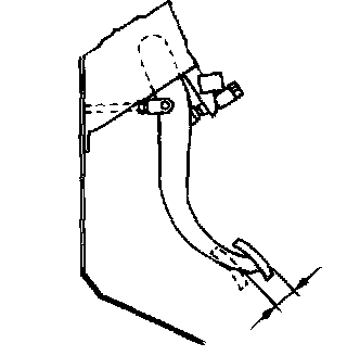 2. Start the engine, depress the brake pedal with approximately 490 N (110 pound) of force, and measure the clearance between the brake pedal and the floorboard.