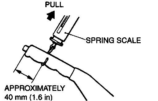 2. Hook a spring scale onto the center of the parking brake lever grip and pull it with a force of 98 - 147 N (22 - 33 pounds) in a direction perpendicular to the handle.
