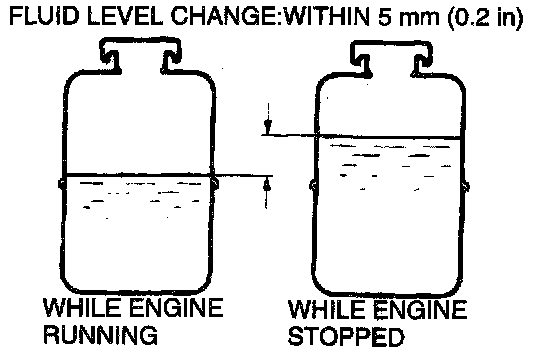 3. Check the fluid in the oil reservoir for foaming or milkiness. Check the difference of the fluid level when the engine is stopped, and while it is running. If the change of the fluid level is 5 mm (0.2 inch) or more, air bleeding should be done.