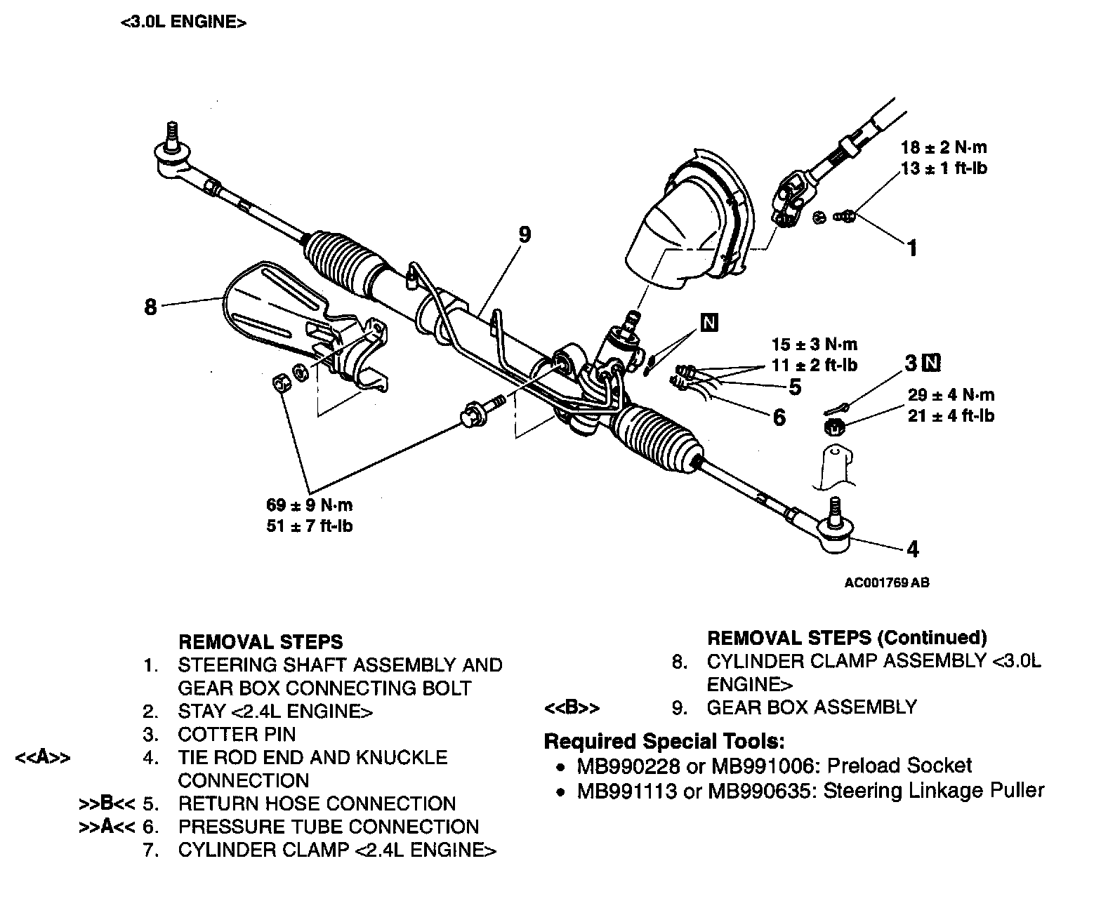 POWER STEERING GEAR BOX ASSEMBLYREMOVAL AND INSTALLATION