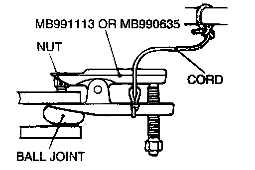 - Use special tool MB991113 or MB990635 to loosen the nut from the ball joint instead of removing it.