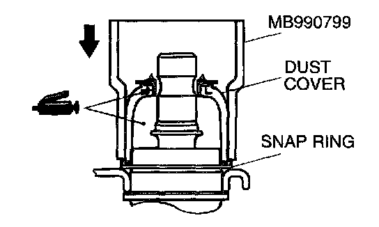 3. Using special tool MB990799, drive in the dust cover until it is fully seated.