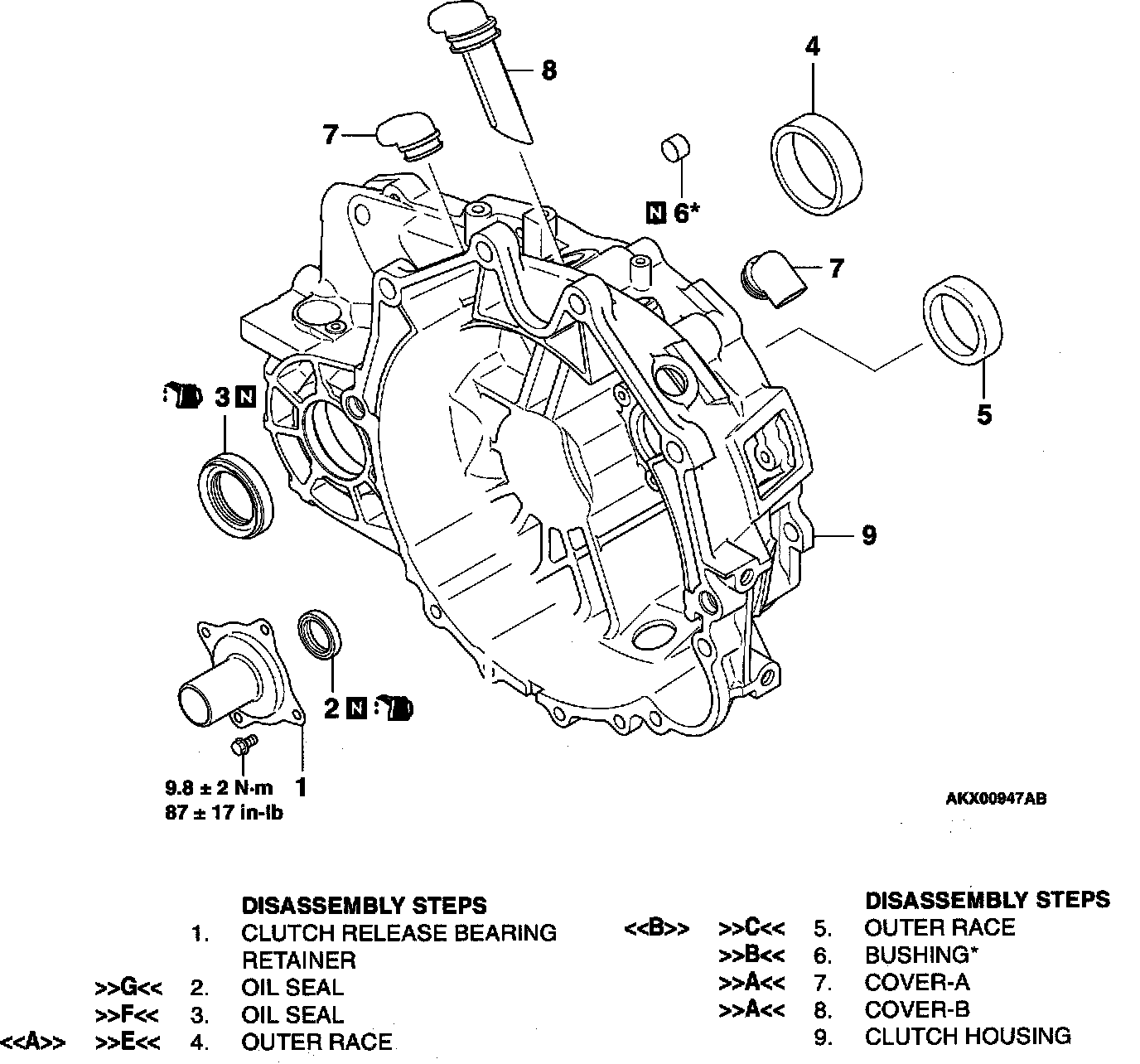 2. Using special tool MD998325 or MD998800 , press fit the oil seal into the clutch housing.