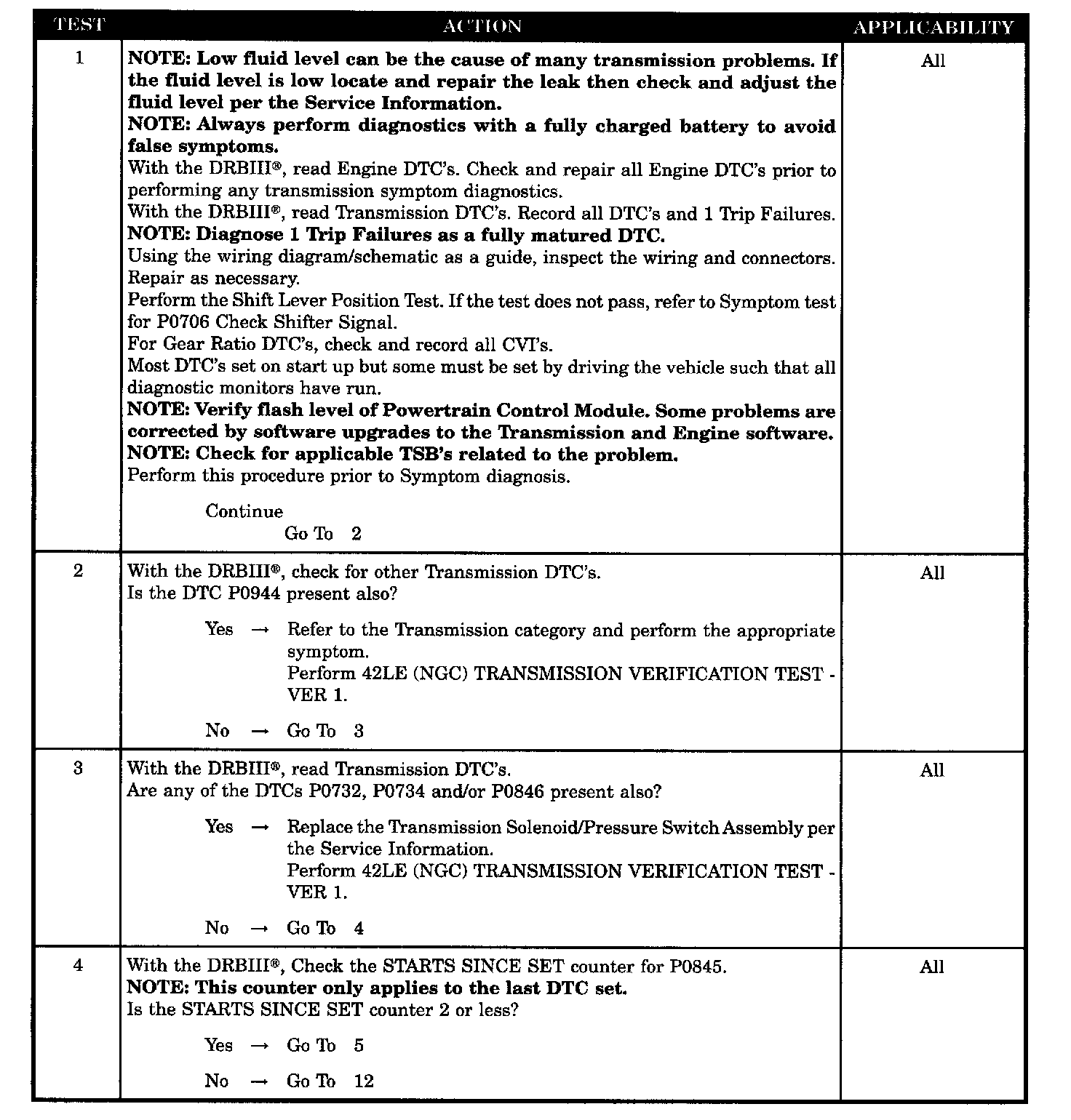 Symptom:P0845-2/4 HYDRAULIC PRESSURE TEST FAILURE