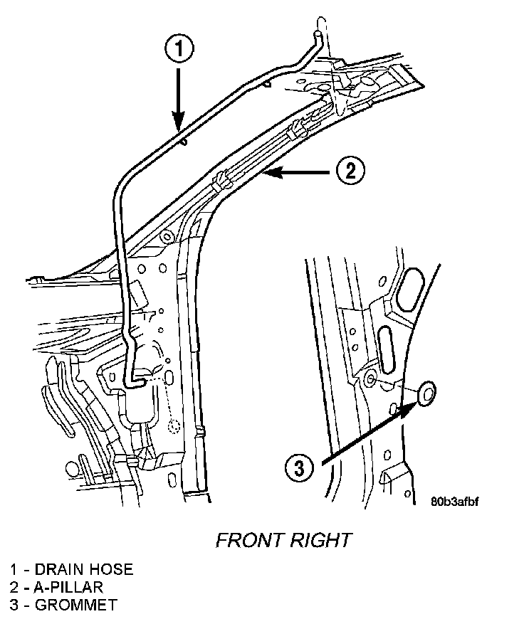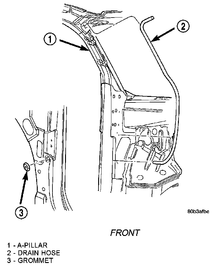 1. Insert end of new hose into drain grommet and replace grommet into sheet metal.
