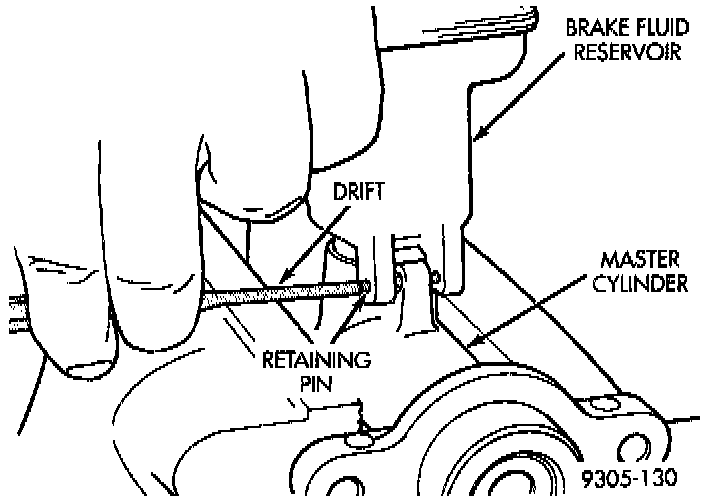 5. Remove the 2 fluid reservoir to master cylinder retaining pins.