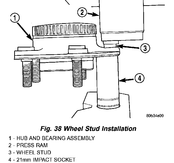 CAUTION: Take care to keep hub and bearing assembly from falling during stud removal. Damage to the hub and bearing could result.