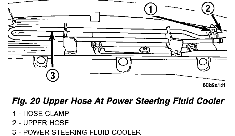4. Install power steering fluid hoses and on the power steering fluid cooler. Be sure hose clamps are installed on hose past the upset bead on the power steering cooler.