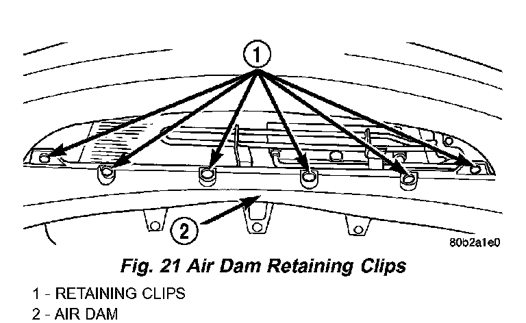 6. Remove the 6 clips mounting the air dam to the radiator lower support.