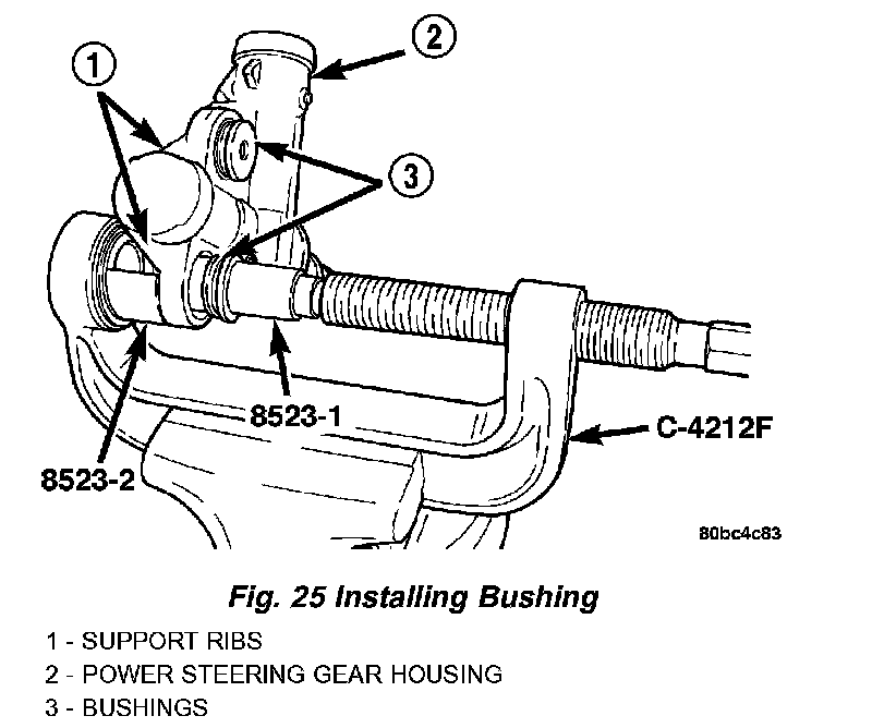 4. Repeat the above procedure on the other power steering gear housing bushing.