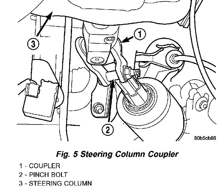CAUTION: Before removing the steering column coupler from the intermediated steering shaft be sure the steering wheel is locked from rotating. If the steering wheel is allowed to rotate freely after it is disconnected from the intermediated shaft, the clock spring will be damaged and will need to be replaced.