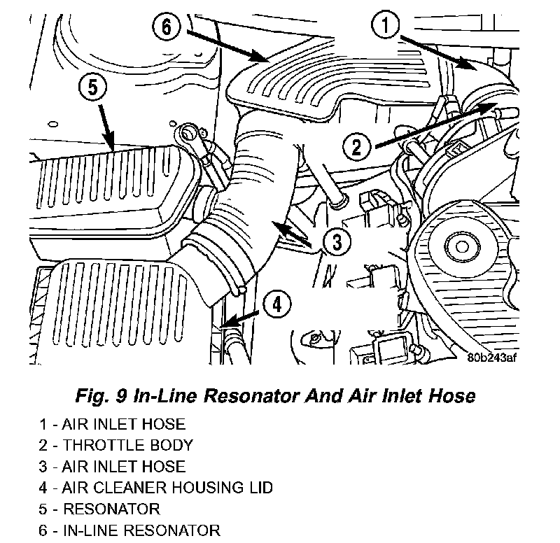 10. Remove the in-line resonator and inlet hose from the throttle body and air let hose coming from the lid of the air cleaner housing.