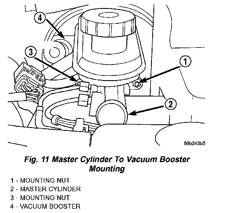 12. Remove the two nuts mounting the master cylinder to the vacuum booster.
