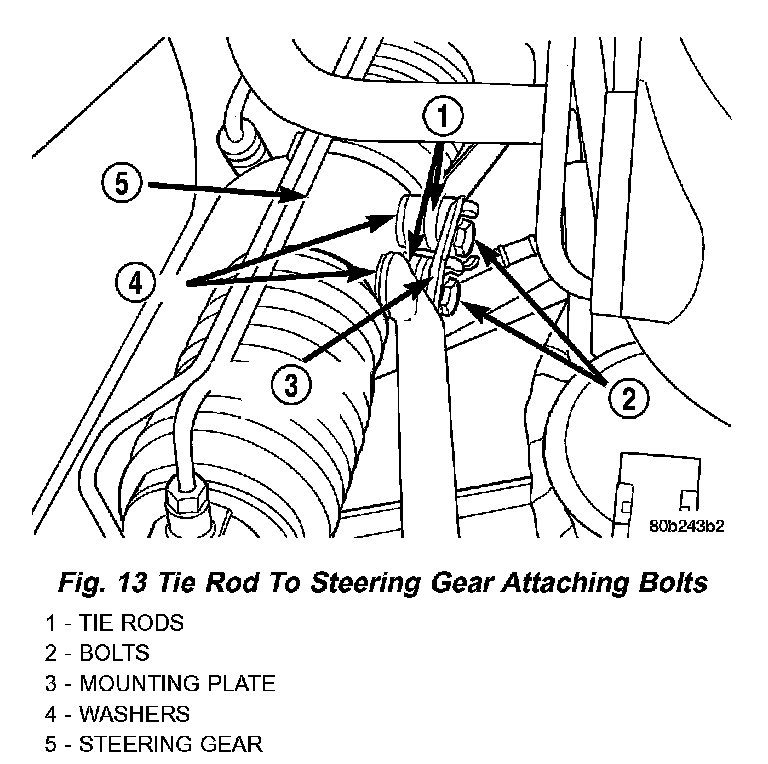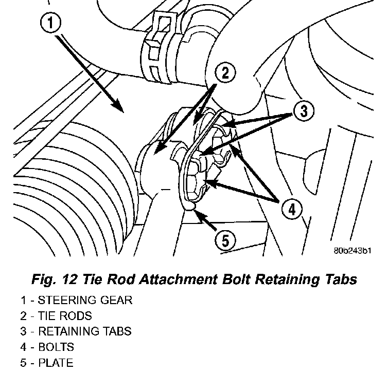 16. Bend back the retaining tabs on the mounting plate for the tie rod to steering gear mounting bolts.