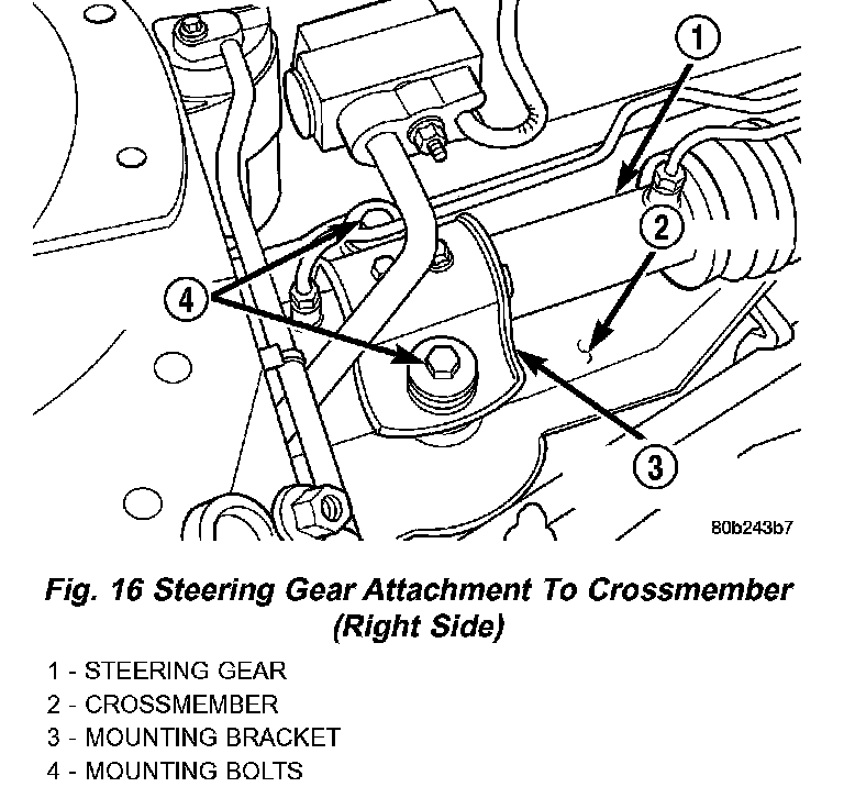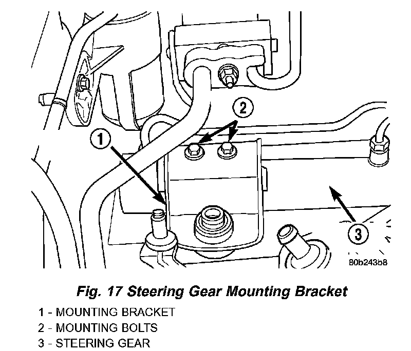 NOTE: It may be necessary to loosen the two mounting bolts attaching the right mounting bracket to the steering gear in order to clear the air conditioning lines.