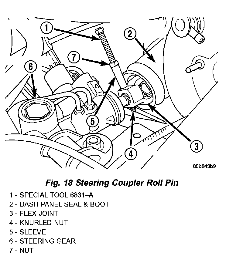 23. Using roll pin Remover, Special Tool 6831A, remove roll pin from flex joint of intermediate shaft. Roll pin is removed from coupler using following procedure: