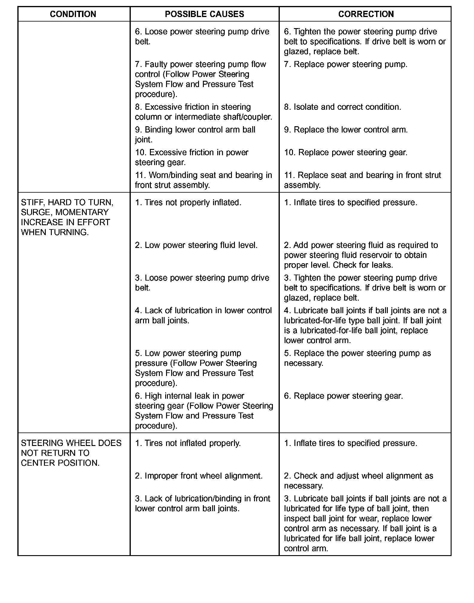 DIAGNOSIS AND TESTING - STEERING DIAGNOSIS CHARTSNOTE: There are three diagnosis charts that cover POWER STEERING NOISE, STEERING WHEEL FEEL, and POWER STEERING FLUID.