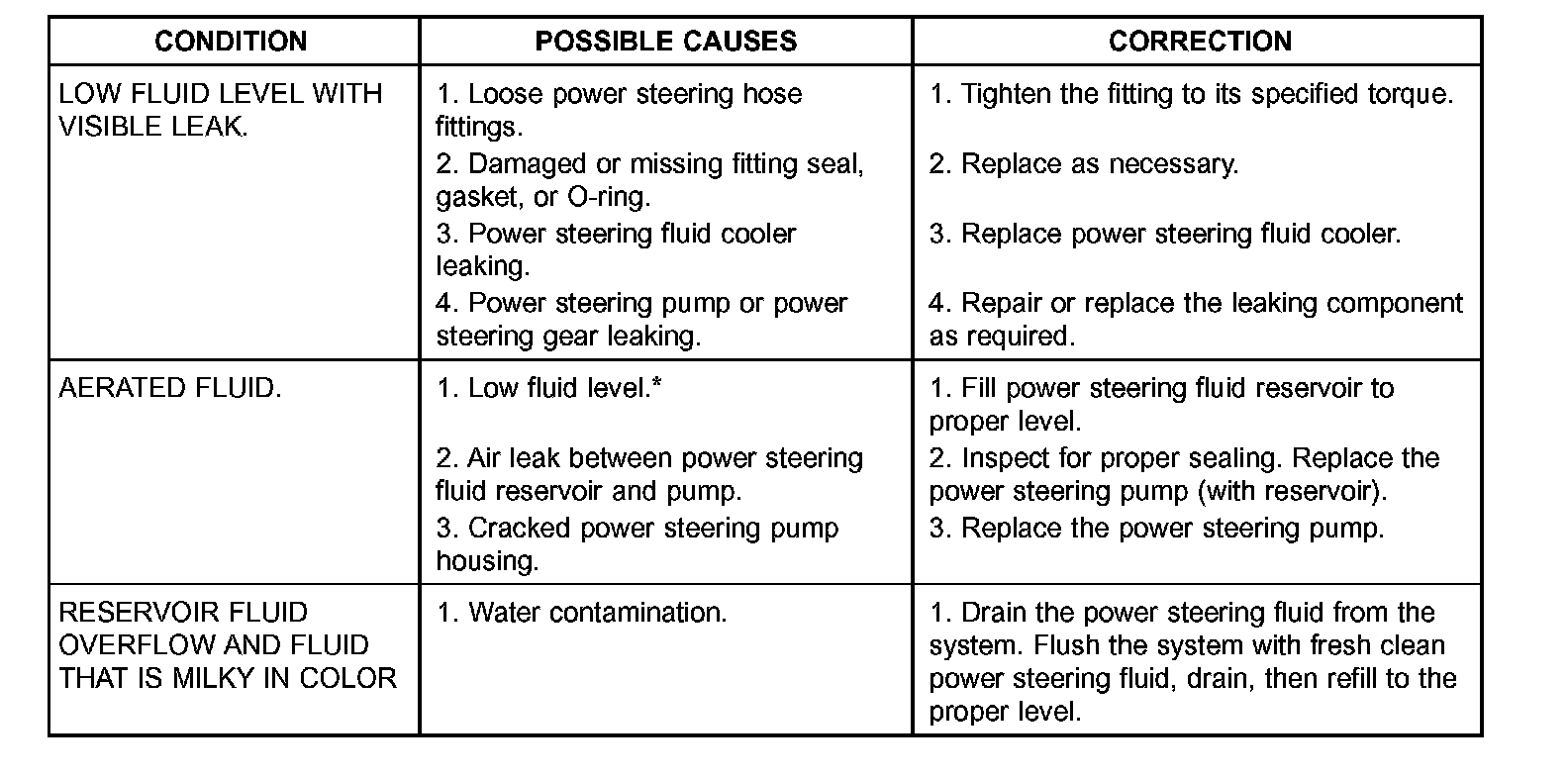 * NOTE: Extremely cold temperatures may cause power steering fluid aeration if the power steering fluid level is low.