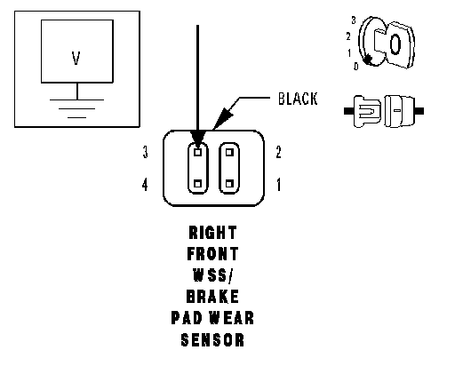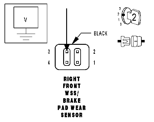 4. MEASURE THE VOLTAGE OF THE RIGHT FRONT WHEEL SPEED SENSOR 12 VOLT SUPPLY CIRCUIT