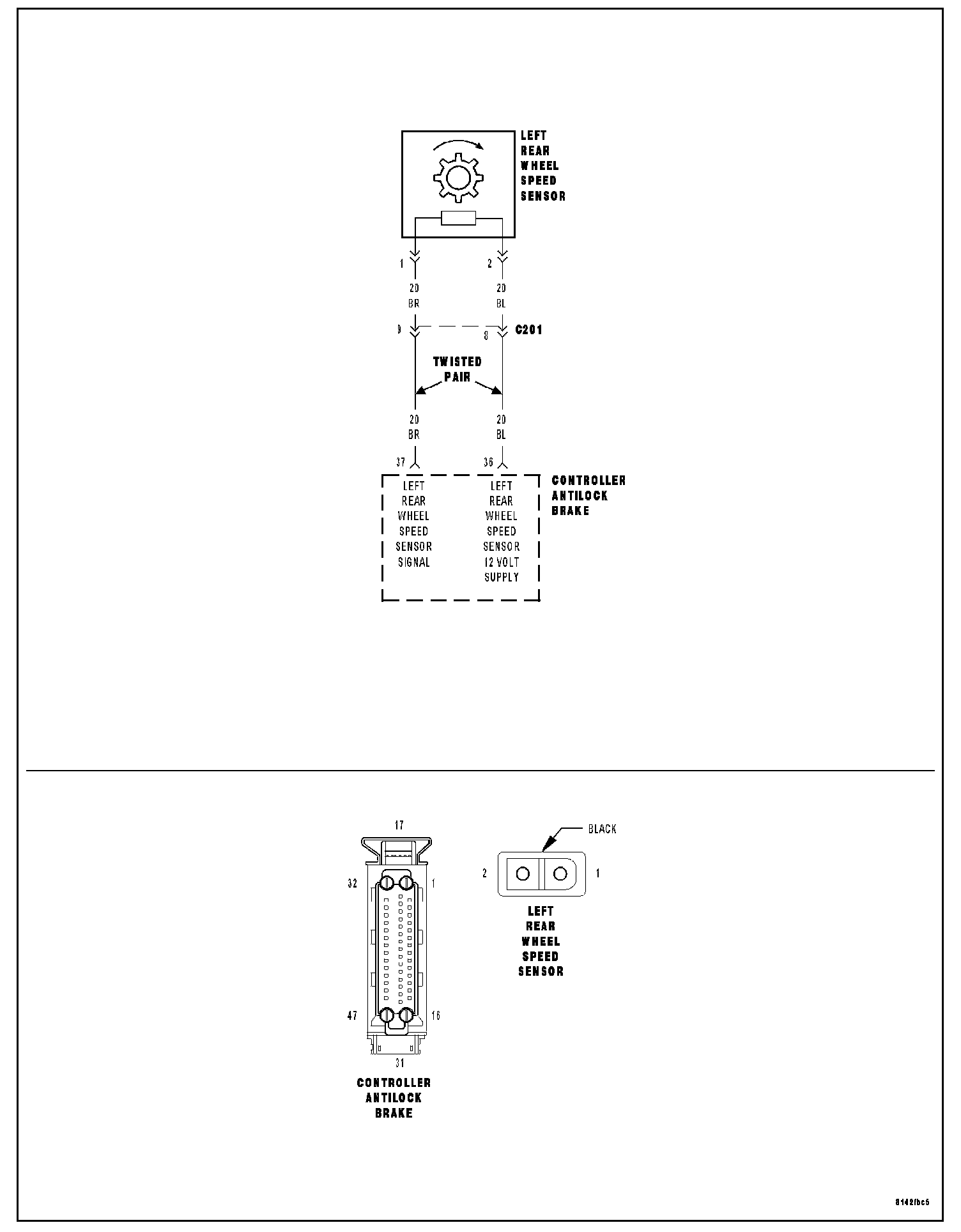 Visually inspect the Left Rear Wheel Speed Sensor, connector and tone wheel for damage and correct installation.