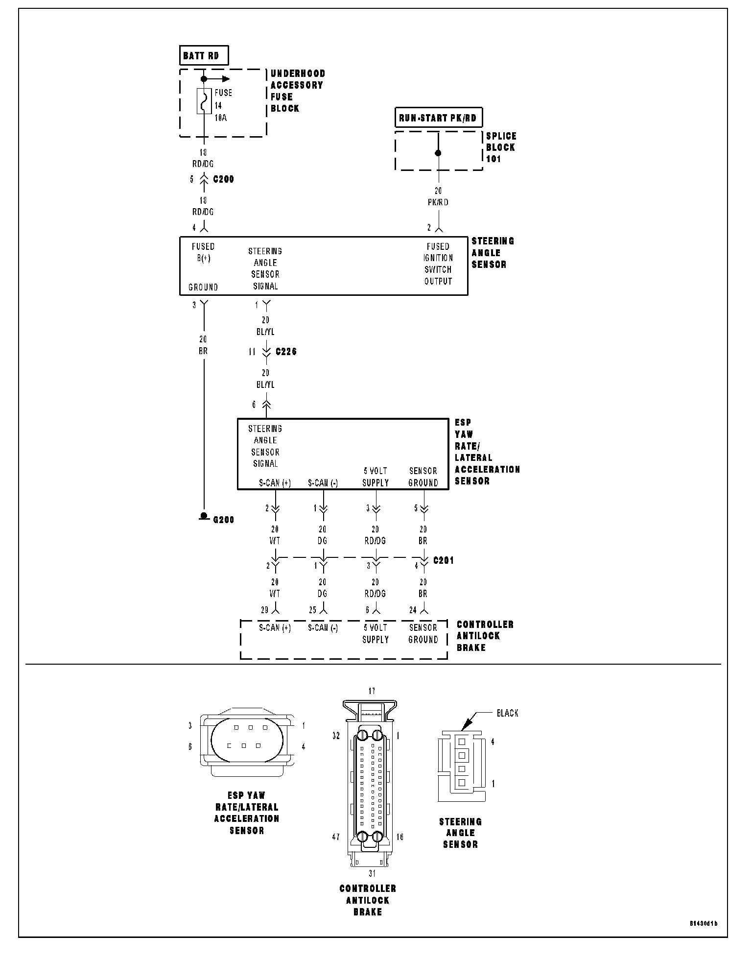 ^ When Monitored: With the ignition On. The Controller Antilock Brake (CAB) monitors the status of the Steering Angle Sensor.