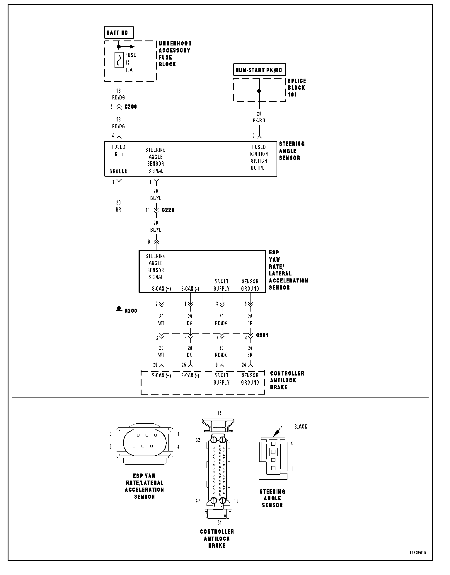 ^ When Monitored: With the ignition on. The Controller Antilock Brake (CAB) monitors the status of the Steering Angle Sensor.