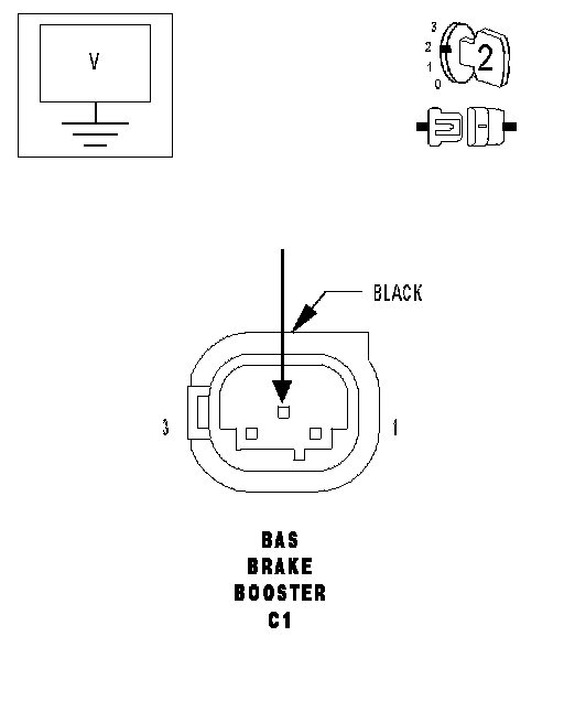 With the ignition off. Reconnect the CAB harness connector. Turn the ignition on. Measure the voltage of the BAS Travel Sensor 5-Volt Supply circuit at the BAS Brake Booster C1 harness connector.