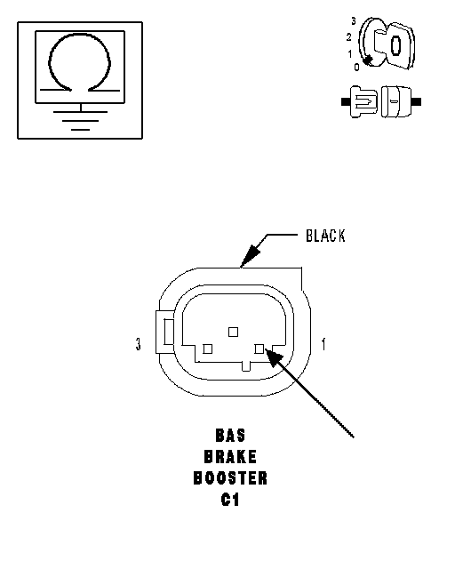 With the ignition off. Measure the resistance of the BAS Travel Sensor Ground circuit from the CAB harness connector to the BAS Brake Booster C1 harness connector.