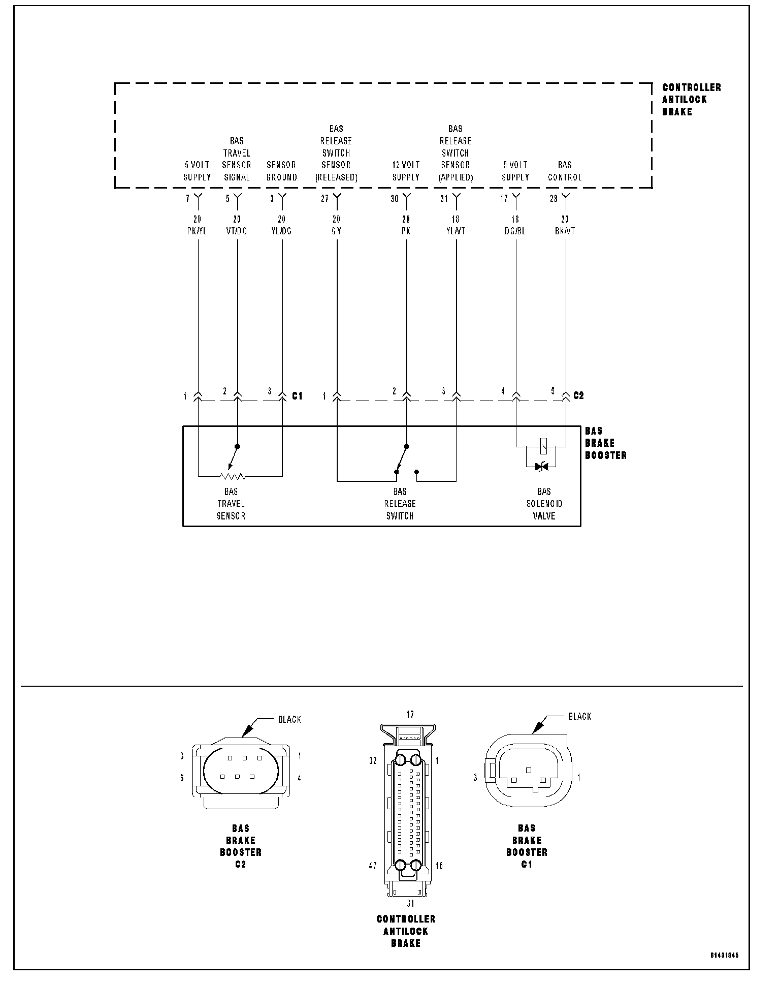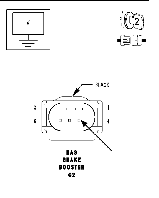 With the ignition on. Measure the voltage of the BAS Solenoid Valve Control circuit at the BAS Brake Booster C2 harness connector.