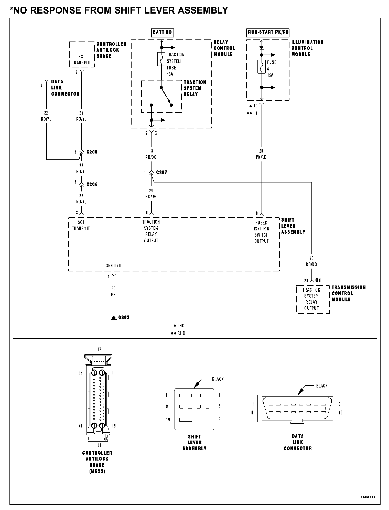 - The Controller Antilock Brake and Shift Lever Assembly both use the SCI Transmit circuit at DLC cavity 9 to communicate with the DRB III(R). If one of these modules keeps the SCI Transmit circuit artificially high or low, the DRB III(R) will not be able to communicate with any of the modules.