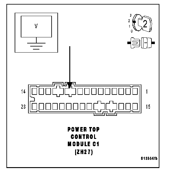 YES: heck and repair the Charging System. Perform POWER TOP CONTROL MODULE VERIFICATION TEST. Power Top Verification Test