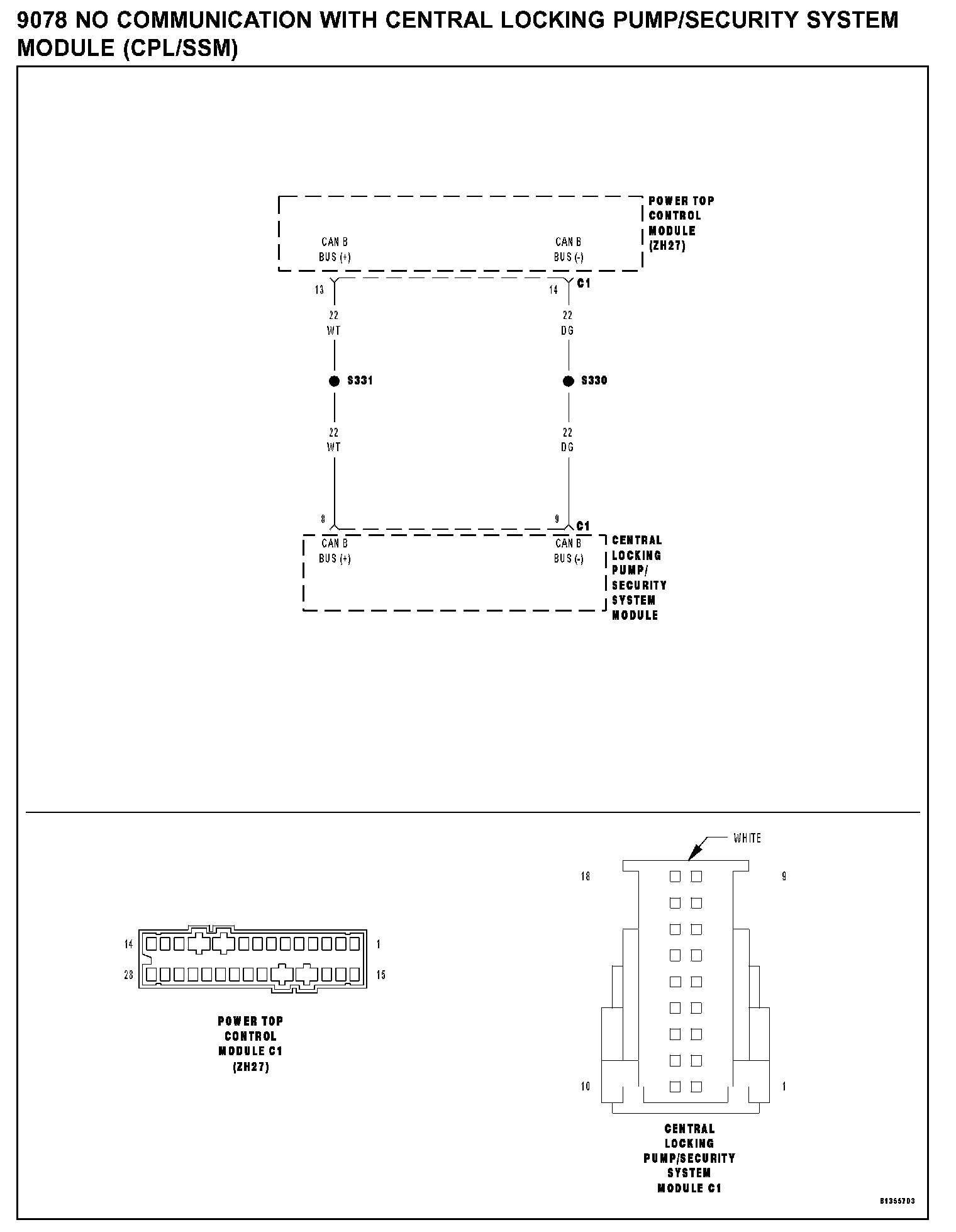 CAN Bus communication failure between the Central Locking Pump/Security System Module and the Power Top Control Module (PTCM).