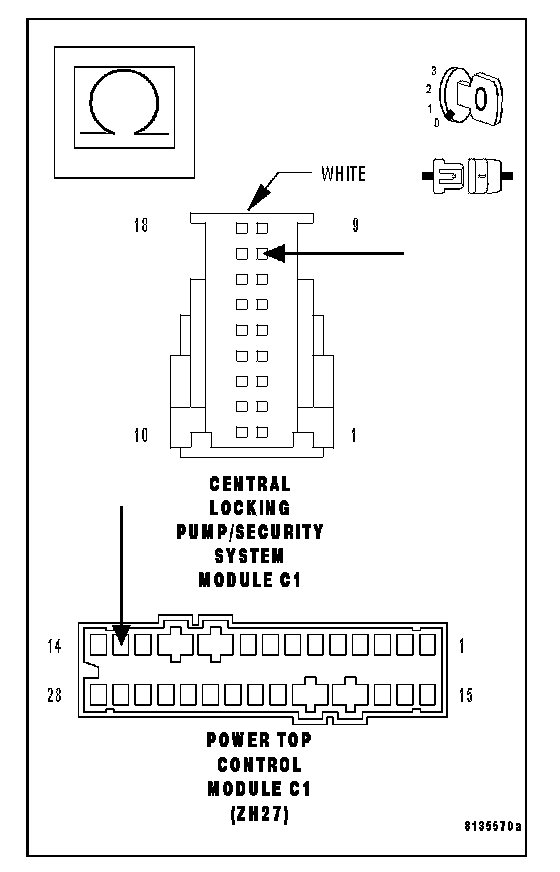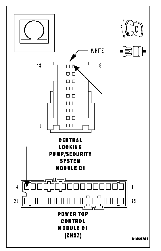 Disconnect the Power Top Control Module (PTCM) C1 harness connector.