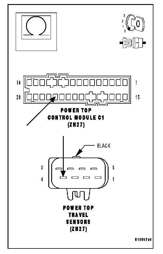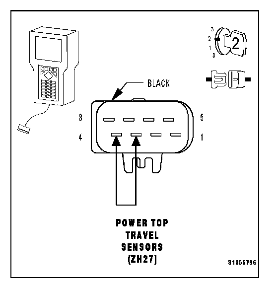 NOTE: Travel Sensors are replaced as a set of four. Perform POWER TOP CONTROL MODULE VERIFICATION TEST. Power Top Verification Test