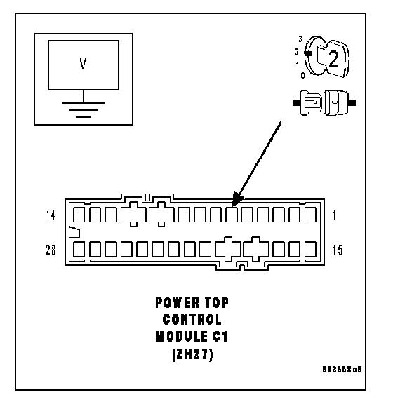 Disconnect the Power Top Control Module C1 harness connector.