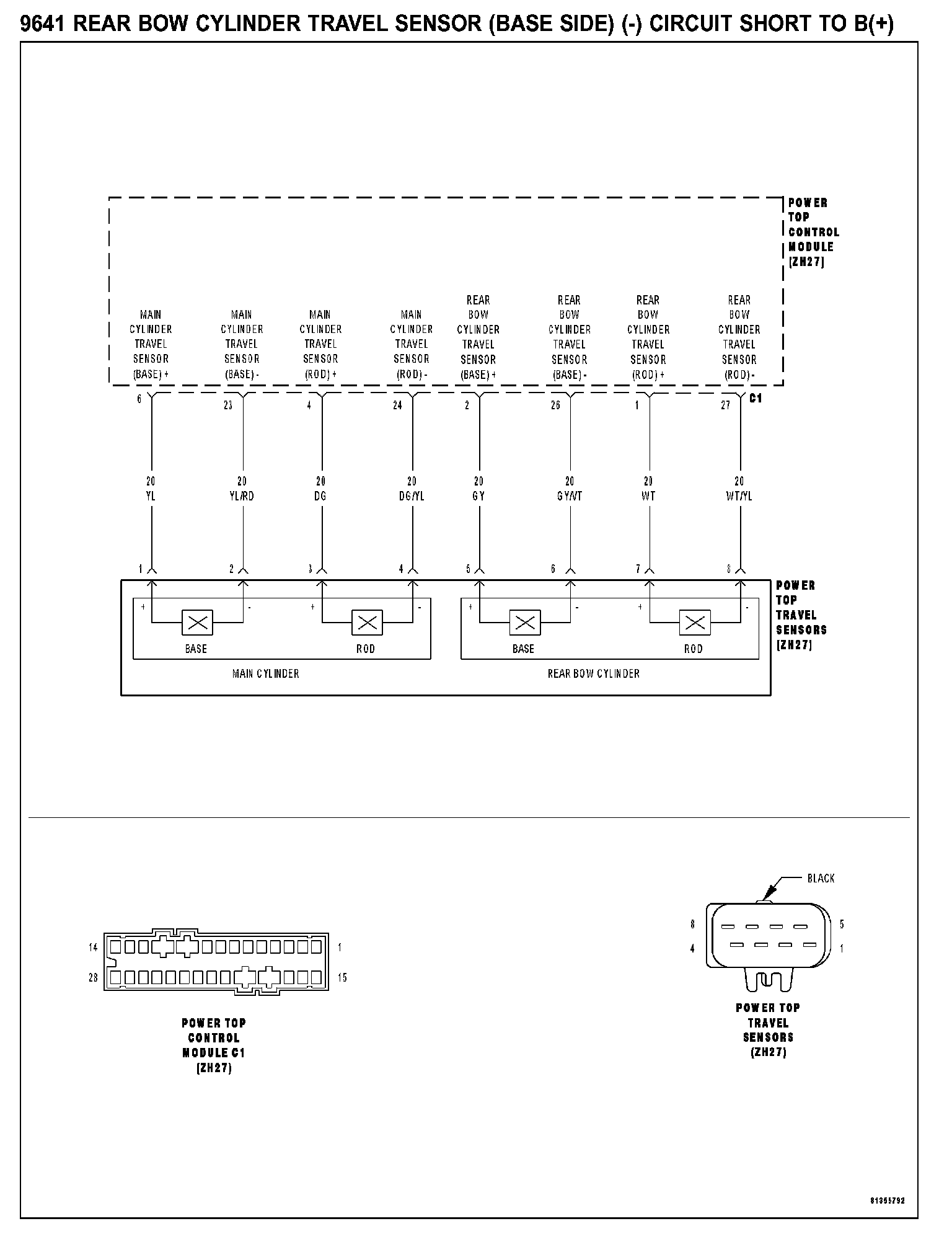 9641 REAR BOW CYLINDER TRAVEL SENSOR (BASE SIDE) (-) CIRCUIT SHORT TO B(+)9641 Rear Bow Cylinder Travel Sensor (Base Side) (-) Circuit Short To B(+):
