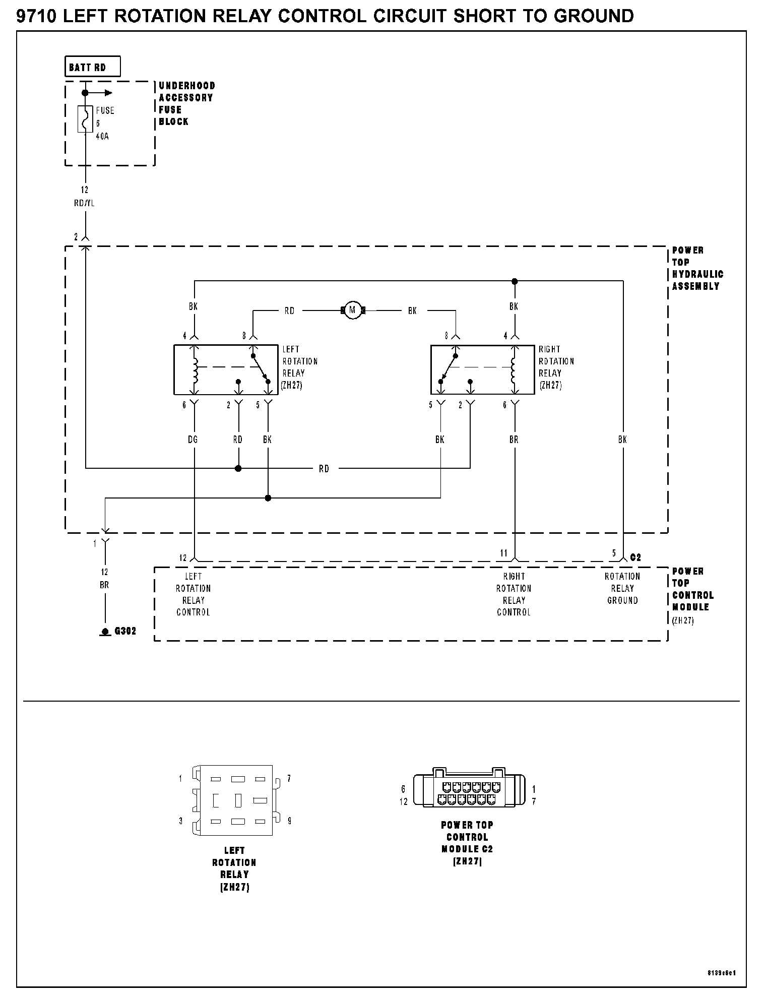 NO: Repair the Left Rotation Relay Control circuit for a short to ground. Perform POWER TOP CONTROL MODULE VERIFICATION TEST. Power Top Verification Test